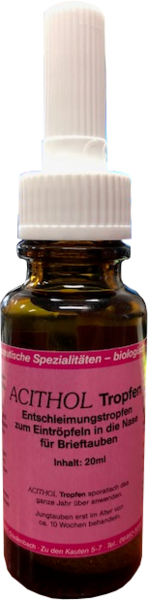 Udrożniające krople do nosa dla gołębi pocztowych - Acithol Tropfen. Oczyszczają nos i wspierają usuwanie zablokowanego śluzu. Zachowanie czystości