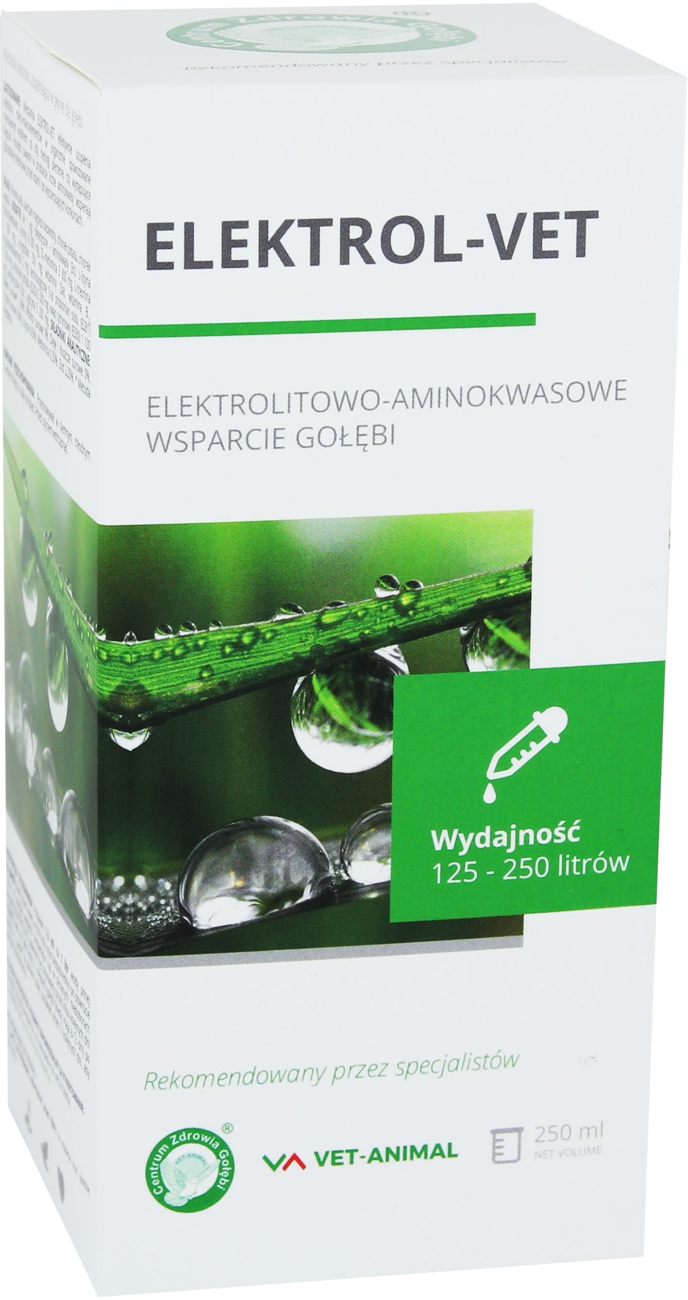 - Zapobieganie odwodnieniu u młodych gołębi po przejściu z "papki" na pokarm stały.