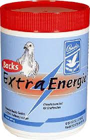Backs Extra Energie to zaawansowany suplement dla gołębi, który zapewnia wysokowartościowe węglowodany, witaminę B12, witaminę C
