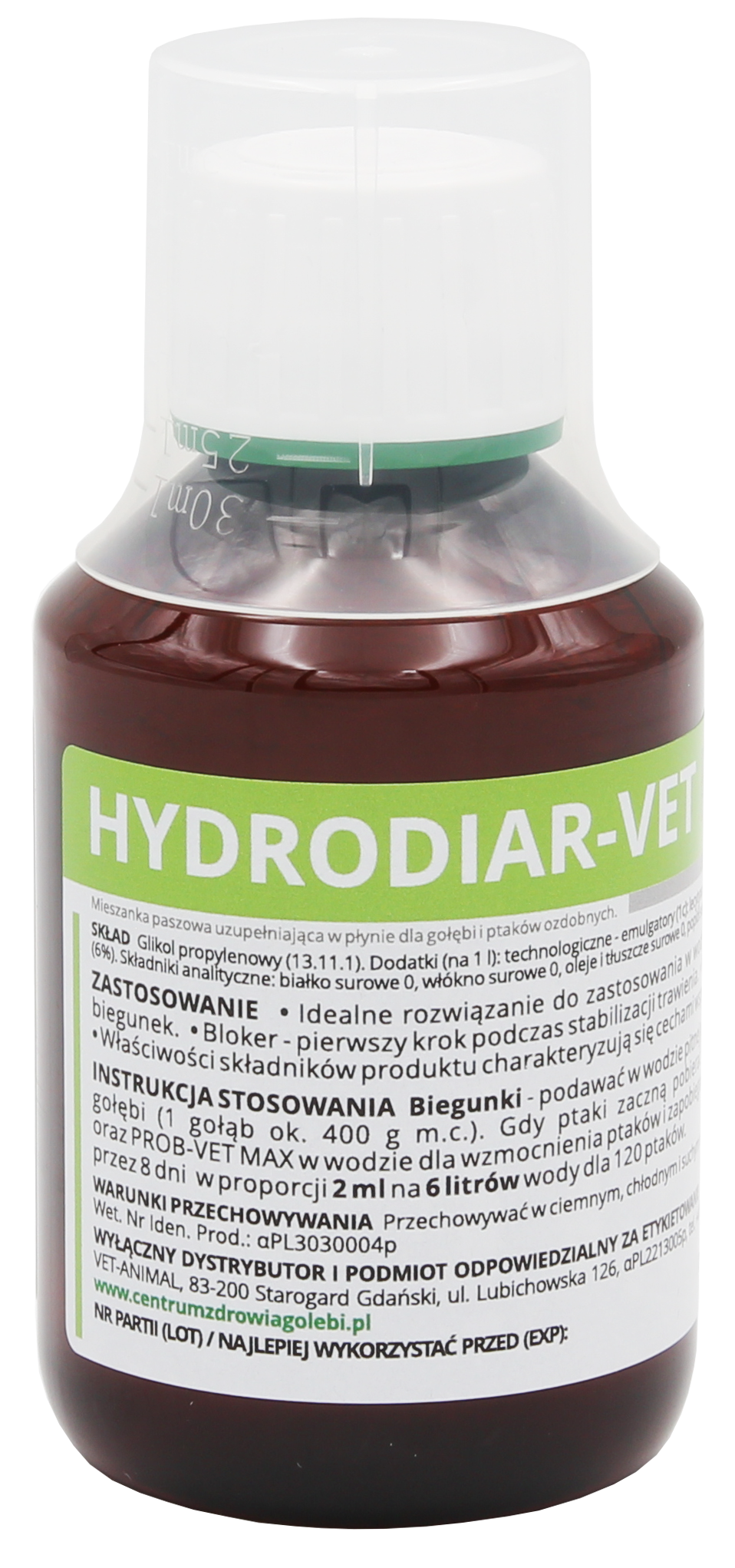 • HYDRODIAR-VET występuje w wygodnej fiolce, gotowy do wymieszania w wodzie pitnej.