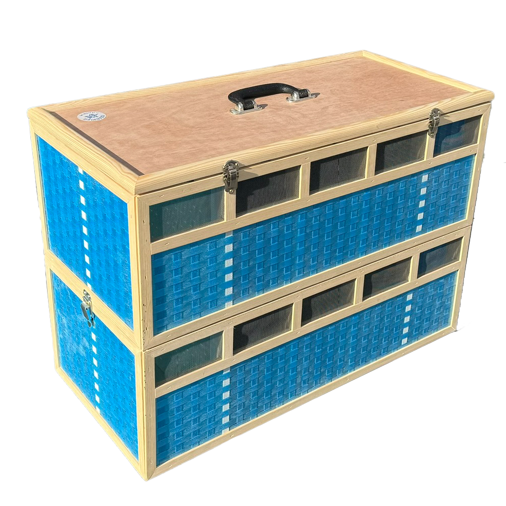 Kosz drewniany z niebieską plecionką 10-krotny to praktyczne i estetyczne rozwiązanie do transportu gołębi. Oto dlaczego warto go wybrać:
