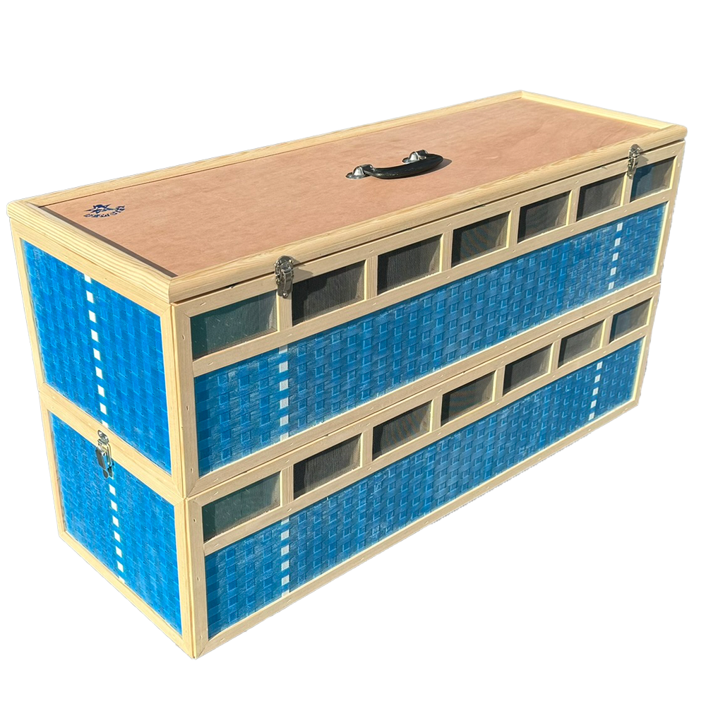 Kosz drewniany z niebieską plecionką 14-krotny to praktyczne i solidne rozwiązanie do transportu gołębi. Oto dlaczego warto go wybrać: