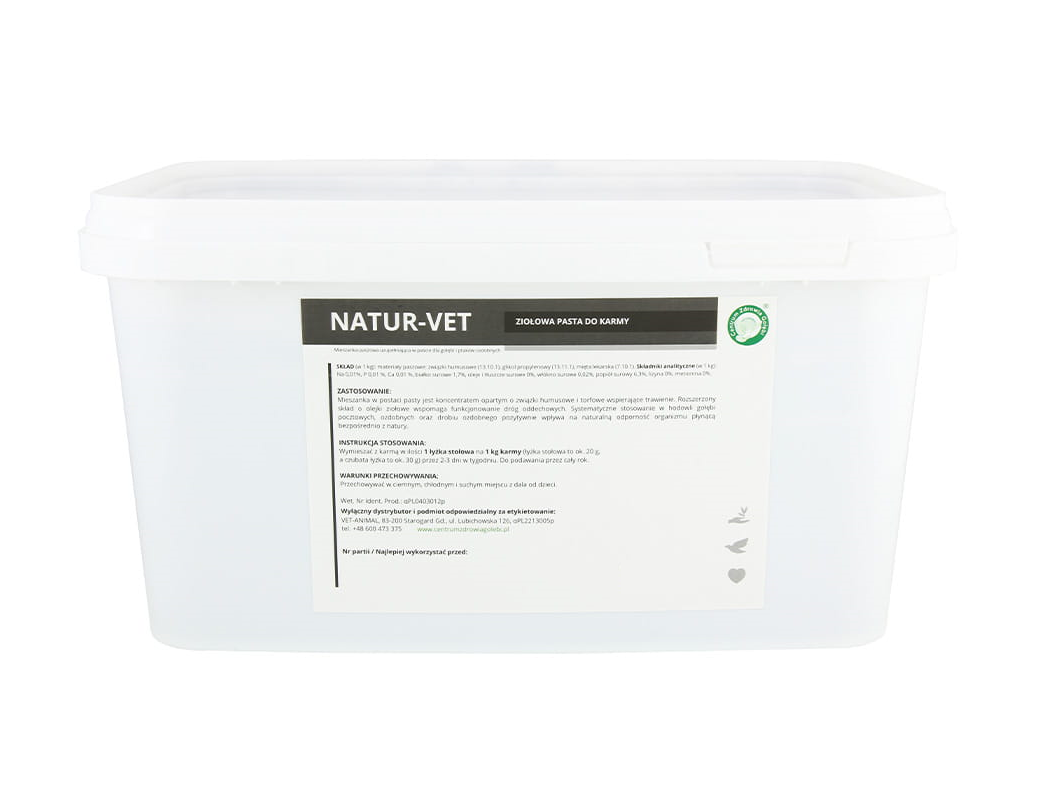 rozszerza jego skład, wspierając funkcjonowanie dróg oddechowych. Regularne podawanie gołębiom pocztowym i ozdobnym, a także drobiowi