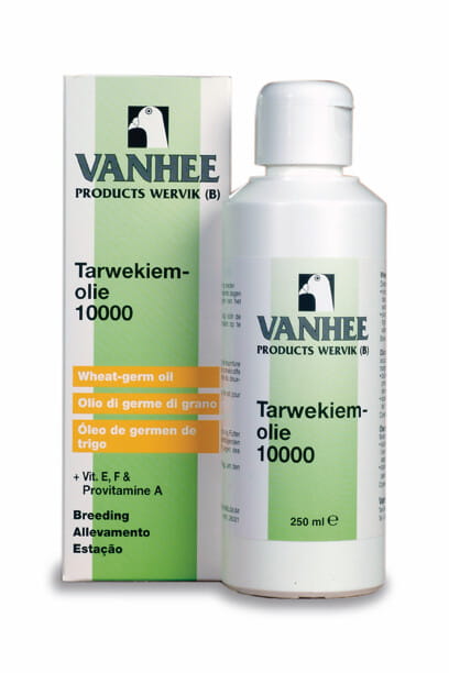 Tarwekiem-olie 10000 to olejek z kiełków pszenicy, zalecany szczególnie w okresie chowu i lotów gołębi. Wspiera płodność, stymulując jednocześnie