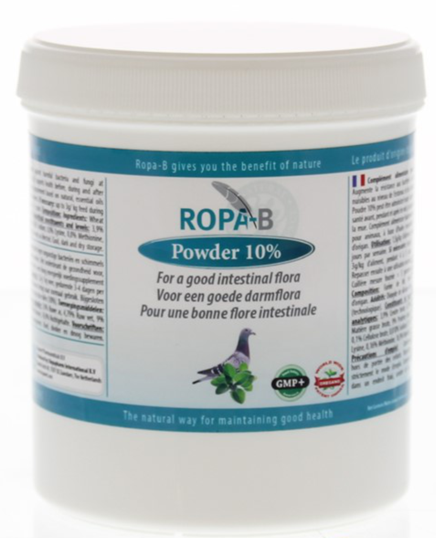 ROPA-B Powder 10% to wyjątkowa pasza dodatkowa, zaprojektowana specjalnie dla gołębi, aby wspomagać ich odporność na bakterie i grzyby w