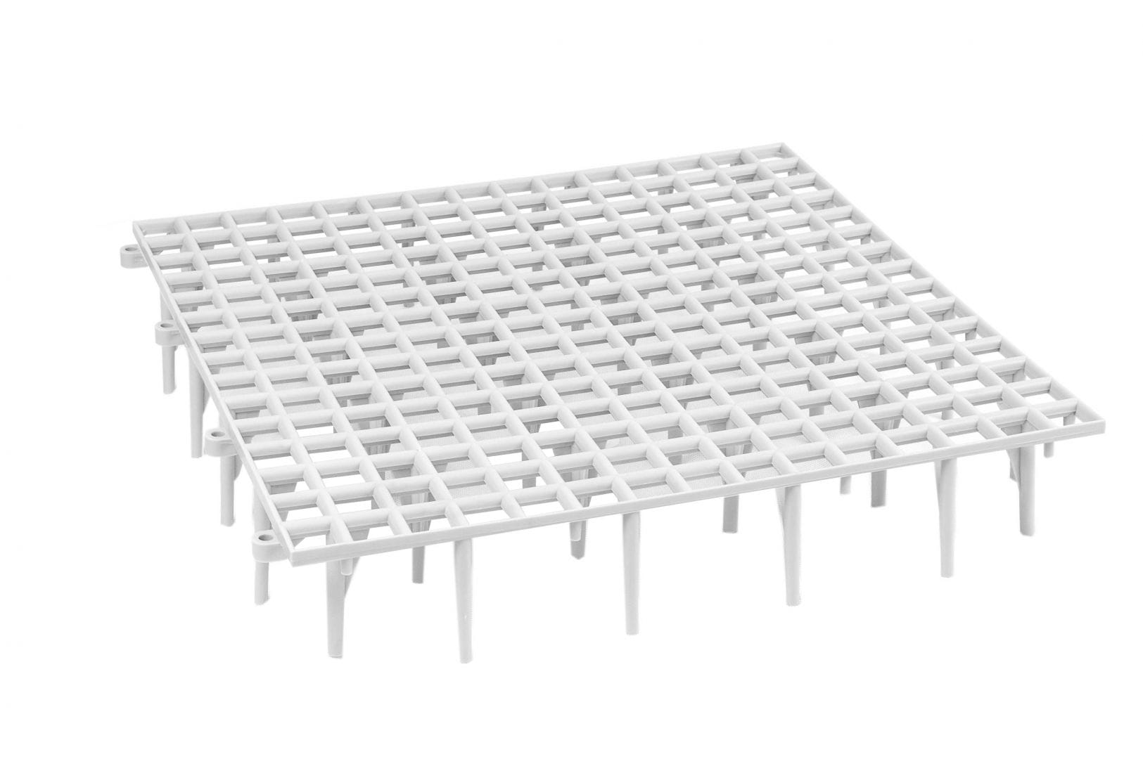 - Posiadają kwadratowe oczka o rozmiarze 23x23mm, przez które swobodnie przedostają się nieczystości, co zapewnia utrzymanie odpowiedniej higieny.