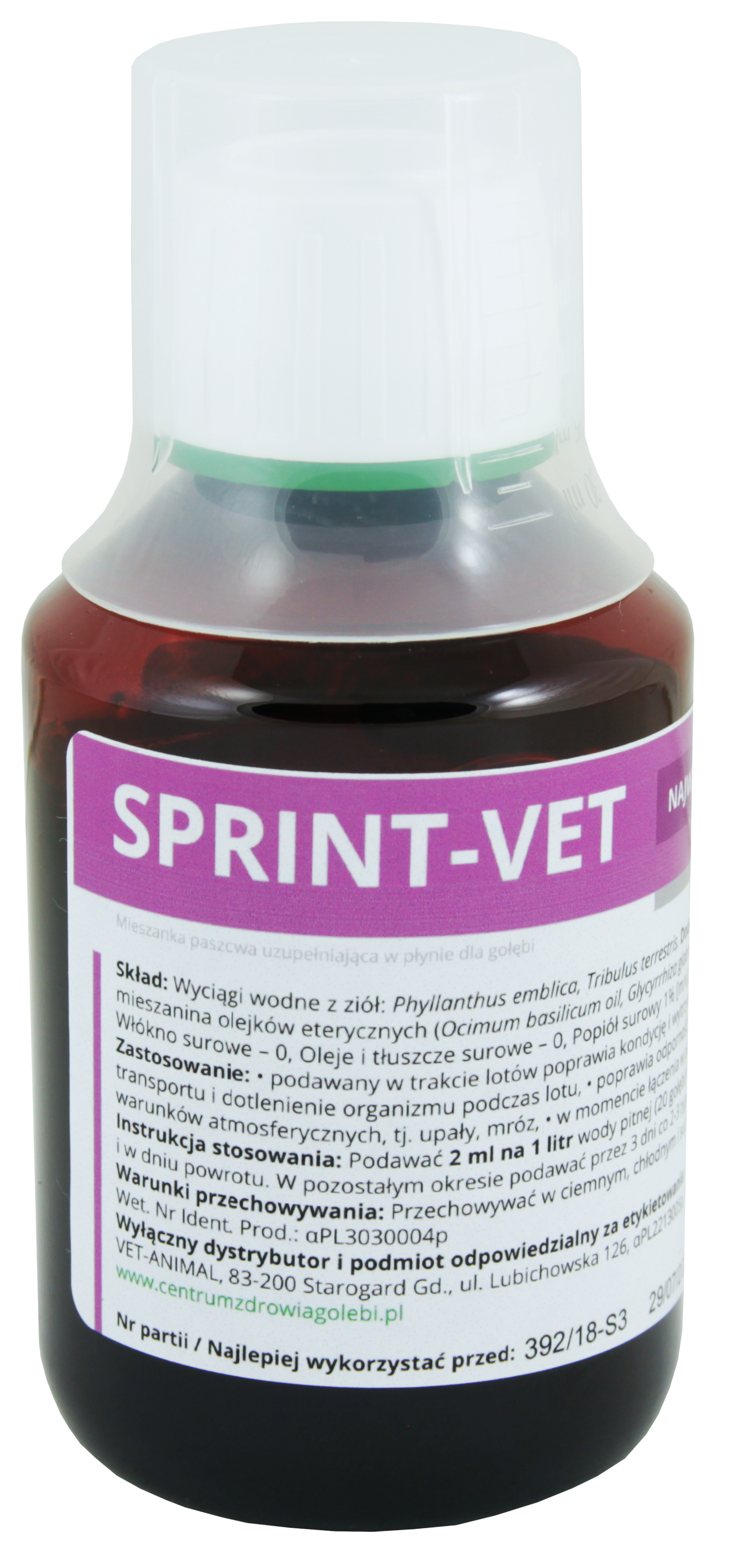 • Podawać 2 ml na 1 litr wody pitnej (20 gołębi) lub 4 ml na 1 kg karmy 2 dni przed lotem konkursowym i w dniu powrotu.