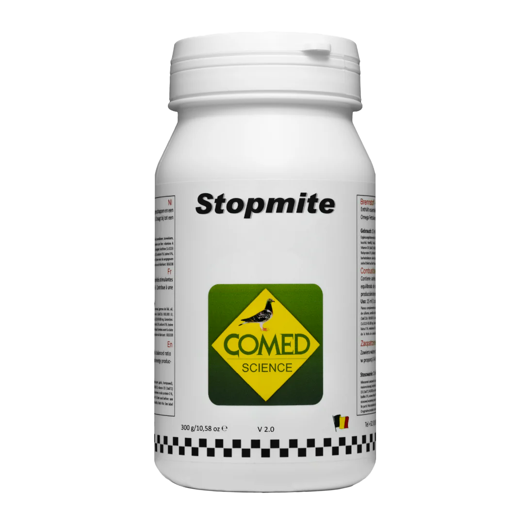 Stop pasożytom i robakom. olejki eteryczne zawarte w Stopmite wraz z karmą dostają się do przewodu pokarmowego, skąd po wchłonięciu, część z nich przenika przez skórę i drogi oddechowe, a część zostaje wydalona z kałem gołębie, ich skóra, oddech, gniazda oraz cały gołębnik przesiąkają szczególnym zapachem, który odstrasza pasożyty oraz gatunki owadów latających glina zawarta w Stopmite oczyszcza organizm przez absorpcję i neutralizację amoniaku w odchodach Stopmite oczyszcza powietrze w gołębniku i czyni go mniej drażniącym zapewnia bardzo przyjemny zapach w gołębniku nieszkodliwy dla organizmu, korzystnie wpływa na zdrowie gołębi Zalecane podawanie: